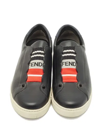 blue leather knit panels scalloped trim slip-on style accent trim Condition: GOOD. This previously owned and used item is in good condition with minimal signs of use. This may include fading of material or plating and scratches.