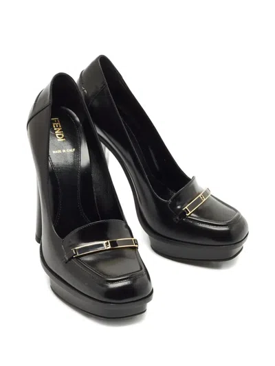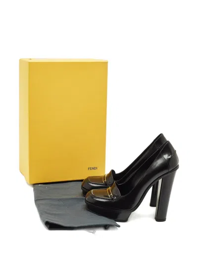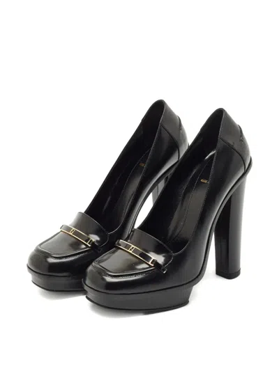 black leather upper block heel logo detail This piece comes complete with a protective dust bag. Your purchase will arrive to you in its original packaging. Condition: GOOD. This previously owned and used item is in good condition with minimal signs of use. This may include fading of material or plating and scratches.