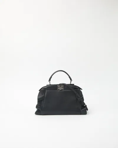 FENDI Mini Peekaboo Wave Bag- Silver-tone hardware- Black leather- Leather handle with detachable shoulder strap- Tonal lining with two compartments and two pockets- VintageOverall Preloved Condition: Very Good.Exterior Condition: Very Good. Minor dent on leather.Interior Condition: Very Good. Clean with light trace of use.Hardware: Shiny with scratches.Delivered with dust bag, rain coverMade in ItalyDimensions:Height 15 cmWidth 23 cmDepth 11 cmHandle drop 8 cmShoulder strap drop 64 cmPlease note that the majority of our items are vintage and therefore have tales to tell unless stated otherwise. Therefore, please look at pictures, descriptions and measurements provided as they give you the best idea of the story this item has to tell.* Please note that when you buy a vintage product, the dimensions may vary slightly from a new one depending on previous care and storage.