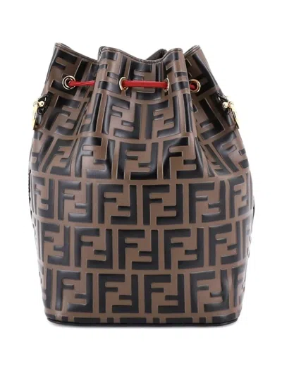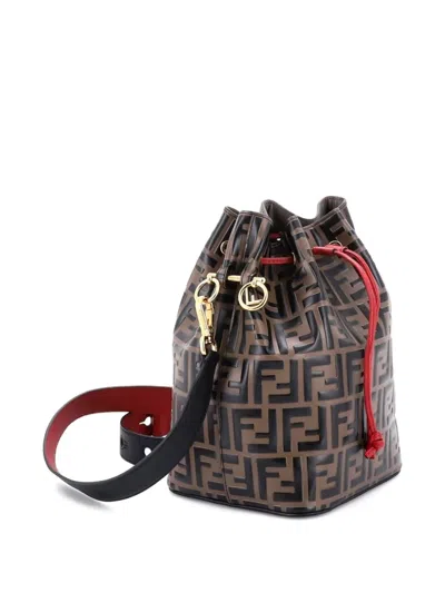 Pre-owned Mon Tresor Zucca Embossed Leather Small Bucket Bag In Brown