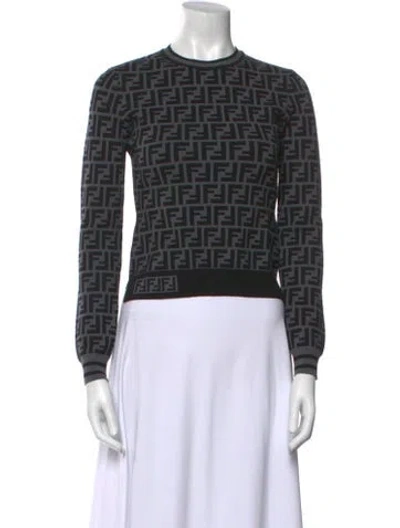 Fendi Sweater By Kim Jones Grey Patterned Zucca FF Logo Embroidered Accent Long Sleeve with Crew Neck Fit: Knitwear by Fendi typically fit true to size. | Fendi Patterned Crew Neck Sweater in Grey, Women's XS