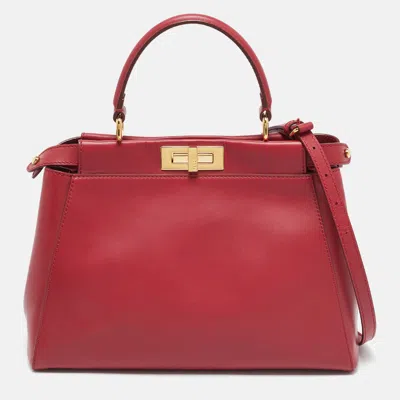 Pre-owned Red Leather And Beaded Lined Medium Peekaboo Top Handle Bag