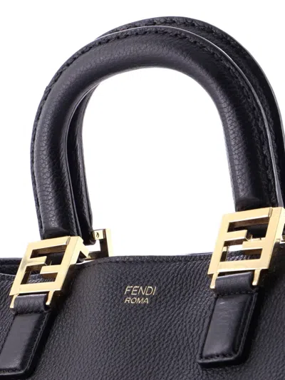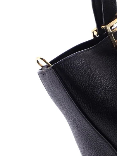 Pre-owned Selleria Ff Handle Tote Leather Medium Satchel In Black