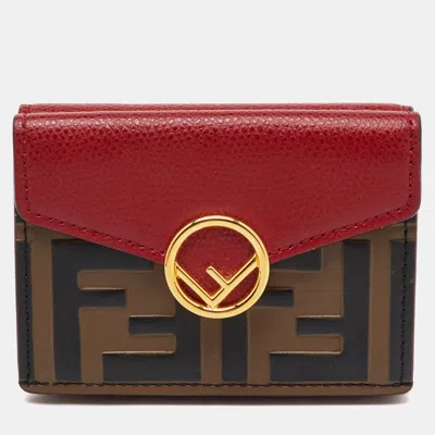 Showcasing the signature Zucca print with a pop of red leather this Fendi trifold wallet blends heritage and modern flair. Compact yet organized it's a bold way to carry cards and cash with unmistakable Fendi charm.