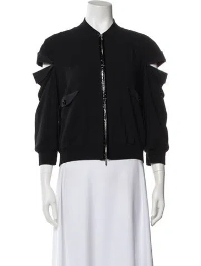 Fendi Wool Bomber Jacket Black Stand Collar Slit Pockets & Zip Closure Designer Fit: Jackets by Fendi typically fit true to size. | Fendi Wool Bomber Jacket in Black, Women's US6, IT42 | M