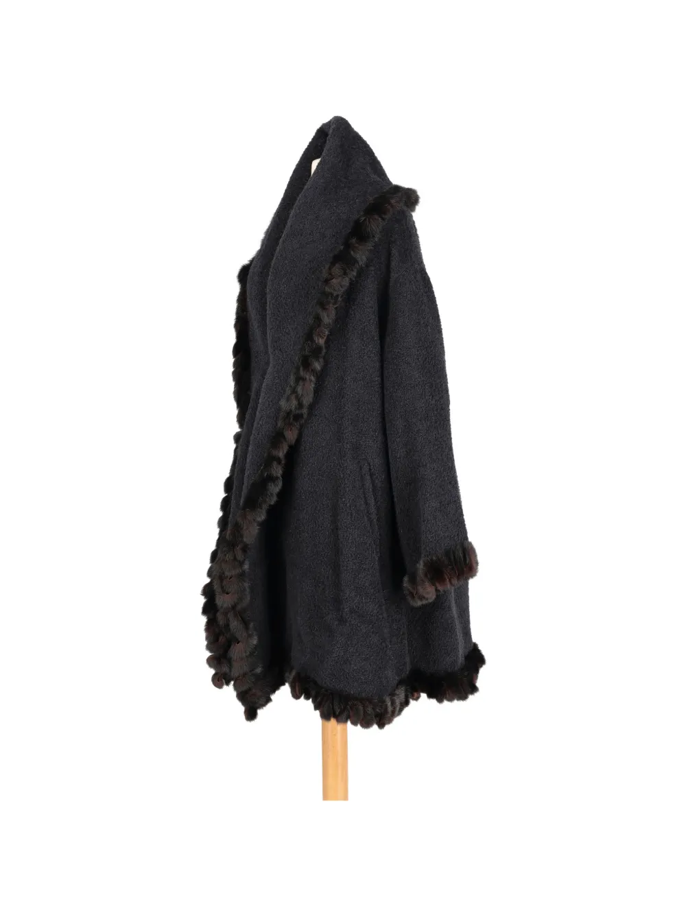 black wide sleeves lapel collar open front Condition: EXCELLENT. This previously owned item is in near-perfect condition with no signs of damage or use.
