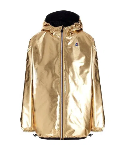 Gold and black printed double-sided casual jacket, iconic Zucca logo pattern, double-sided, classic hood, shoulder drop, front decorated with zipper, long sleeves.