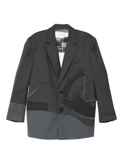 FENG CHEN WANG Patchwork Single-breasted Blazer In Gray