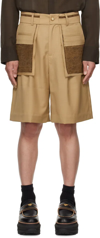 Tan Deconstructed Patchwork Shorts In Brown