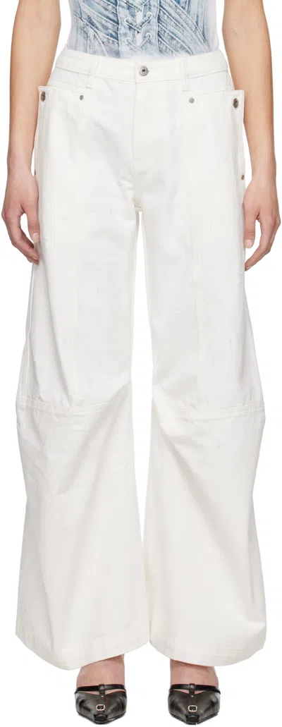 Non-stretch denim jeans. · Paneled construction · Belt loops · Four-pocket styling · Zip fly · Dart at knees · Twisted outseams · Logo patch at back waistband · Logo-engraved silver-tone hardware Supplier color: White