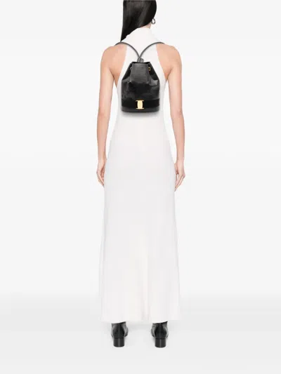 This backpack features an embossed leather body, rolled leather back straps, an open top with drawstring closure, and an interior zip pocket. Black. Serial Number: BZ-21 5676. This item has no inclusions. Condition: EXCELLENT. This previously owned item is in near-perfect condition with no signs of damage or use. Due to the exclusivity of this item and its limited availability, processing and delivery might take longer than usual. Please refer to the photos on this product page for a detailed view of the item, including any damages declared.