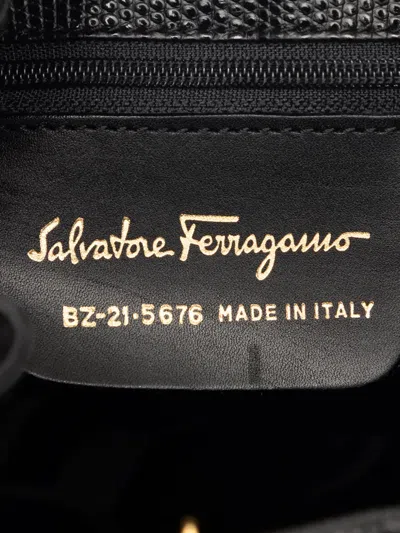 Pre-owned 2000-2026 Lizard Embossed Leather Vara Bow Drawstring Backpack In Black