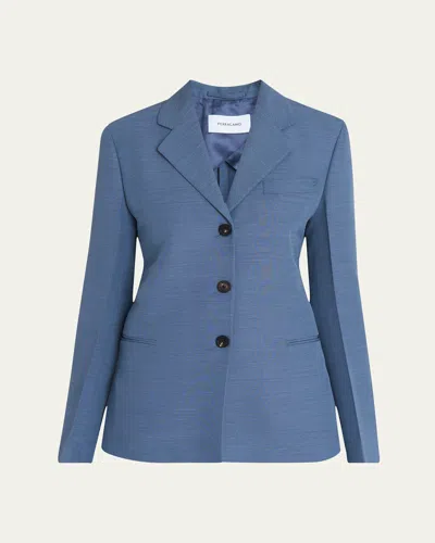 Ferragamo jacket crafted from wool faille Notch lapels; 3 button placket Long sleeves; button cuffs Chest pocket; waist jet pockets Tailored fit Viscose/virgin wool Dry clean Made in Italy