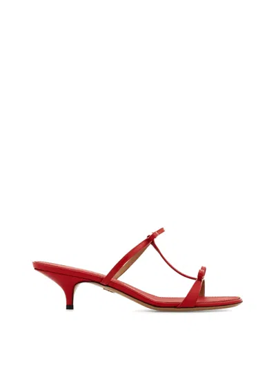 FERRAGAMO Abili Patent T-strap Slide Sandals In Flame Red