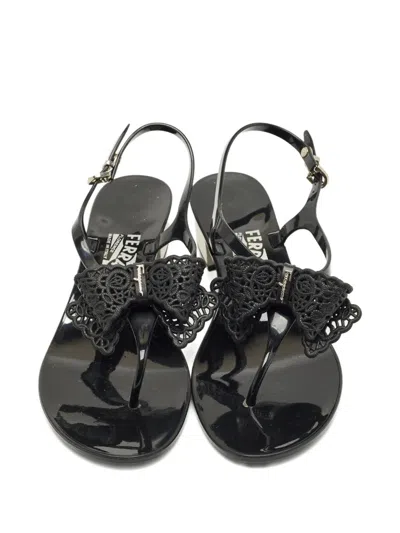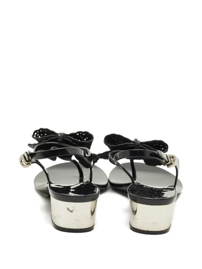 black rubber shapes ankle strap silver-tone heel bow t-strap Condition: GOOD. This previously owned and used item is in good condition with minimal signs of use. This may include fading of material or plating and scratches.