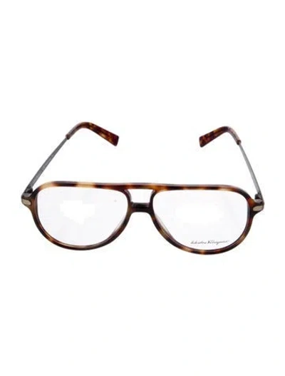 Salvatore Ferragamo Aviator Eyeglasses Black & Brown Tortoiseshell Acetate Clear Lenses Includes Dust Bag & Case | Salvatore Ferragamo Aviator Eyeglasses in Black/Brown
