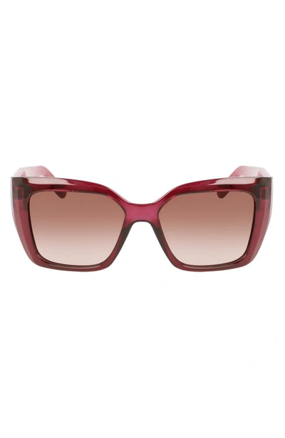 FERRAGAMO Gancini 55mm Gradient Rectangular Sunglasses In Transparent Cyclamen