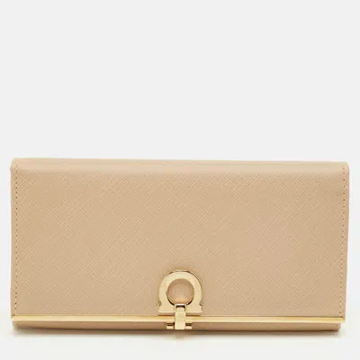 Pre-owned Gancini Icona Beige Leather Continental Wallet In Sand