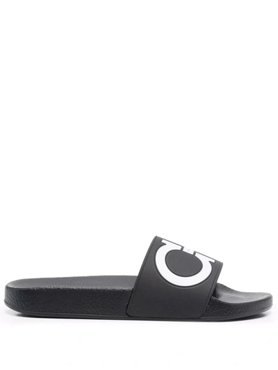 FERRAGAMO Gancini-print Open-toe Slides In Nero White