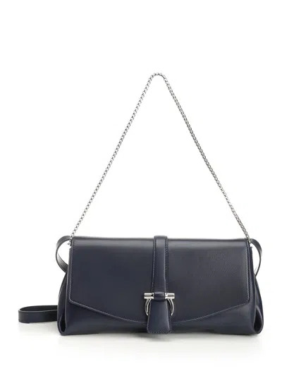 FERRAGAMO Gancino Pouch Medium Shoulder Bag With Shoudler Strap And Chain Shoulder Bags Blue