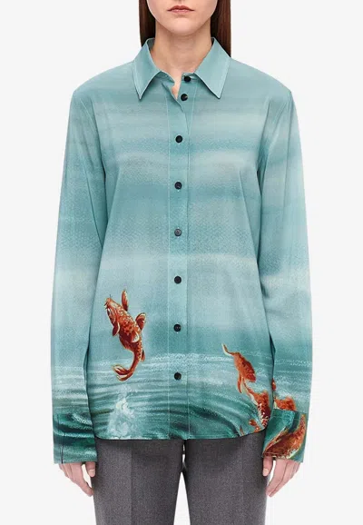 FERRAGAMO Koi Fish Button-down Blouse In Multicolor