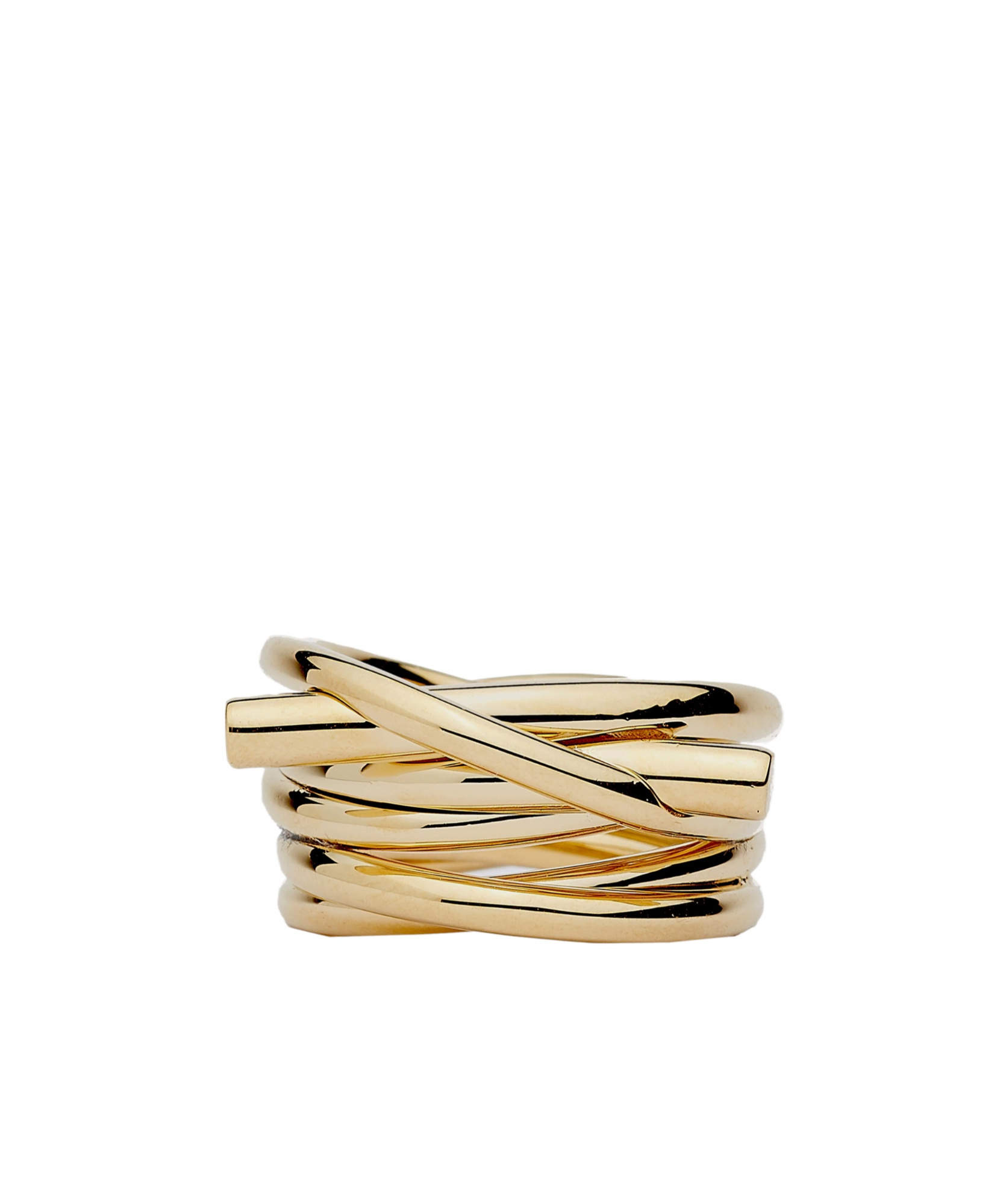 Twisted elegance, timeless style. A single metal string wraps several times to create the Gancio silhouette: this chunky ring is stylish and iconic with a creative flair that is so Ferragamo. Size 52. brass