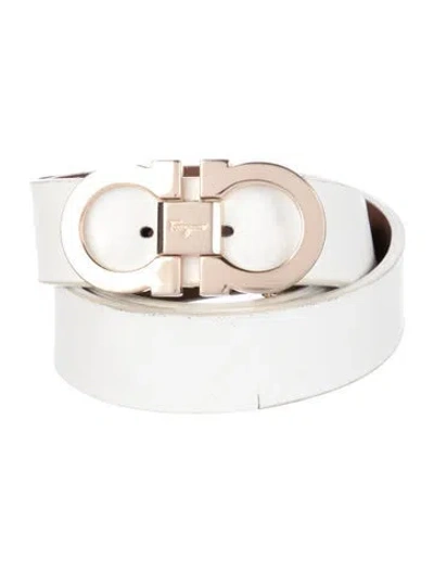Ferragamo Belt White Leather Gold-Tone Hardware Buckle Closure Unfortunately, due to restrictions, this item may not be eligible for shipping in all areas. | Ferragamo Leather Belt in White, Women's L