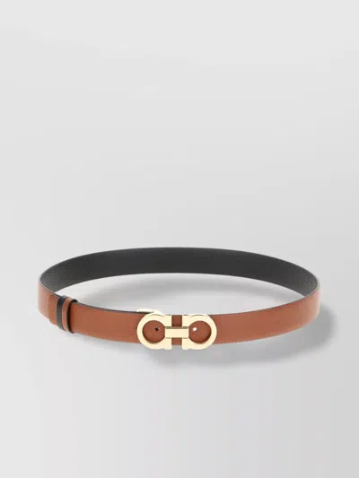 FERRAGAMO Leather Belt With Adjustable Length And Reversible Design In Brown