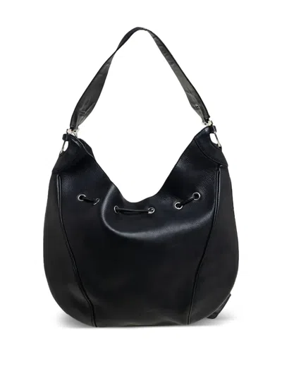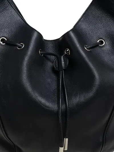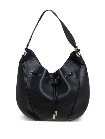 black calf leather Gancini plaque single shoulder strap drawstring fastening main compartment internal logo patch contrast lining silver-tone hardware Condition: GOOD. This previously owned and used item is in good condition with minimal signs of use. This may include fading of material or plating and scratches.