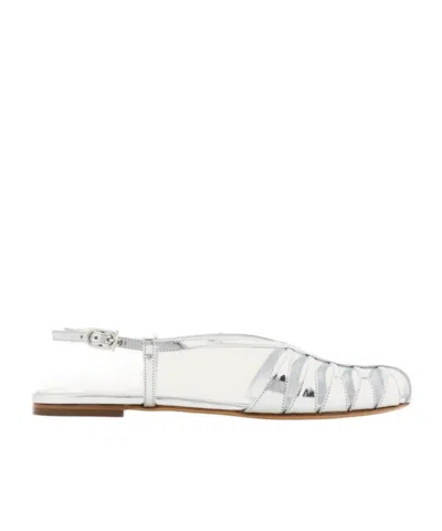 Super glam caged sandal inspired by the iconic Rainbow shoe. The laminated leather cage construction securely wraps the toes and the ankle strap is fastened by a tonal Gancio buckle. The tonal insole and rubber heel complete the design. laminated calfskin