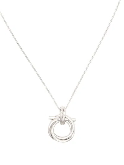 The perfect stand-out necklace that complements even the most basic t-shirt.The Women's Gancini Pendant Necklace by Salvatore Ferragamo is a sophisticated addition to any jewelry collection. This fine necklace features a stunning pendant crafted in silver plating, offering an elegant and timeless appeal. Country of Origin and gemstone details are unspecified, allowing its sleek design to shine. Perfect for adding a touch of luxury to any outfit.