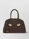FERRAGAMO Structured Pebbled Leather Brown Handbag With Gold-tone Hardware In Blue