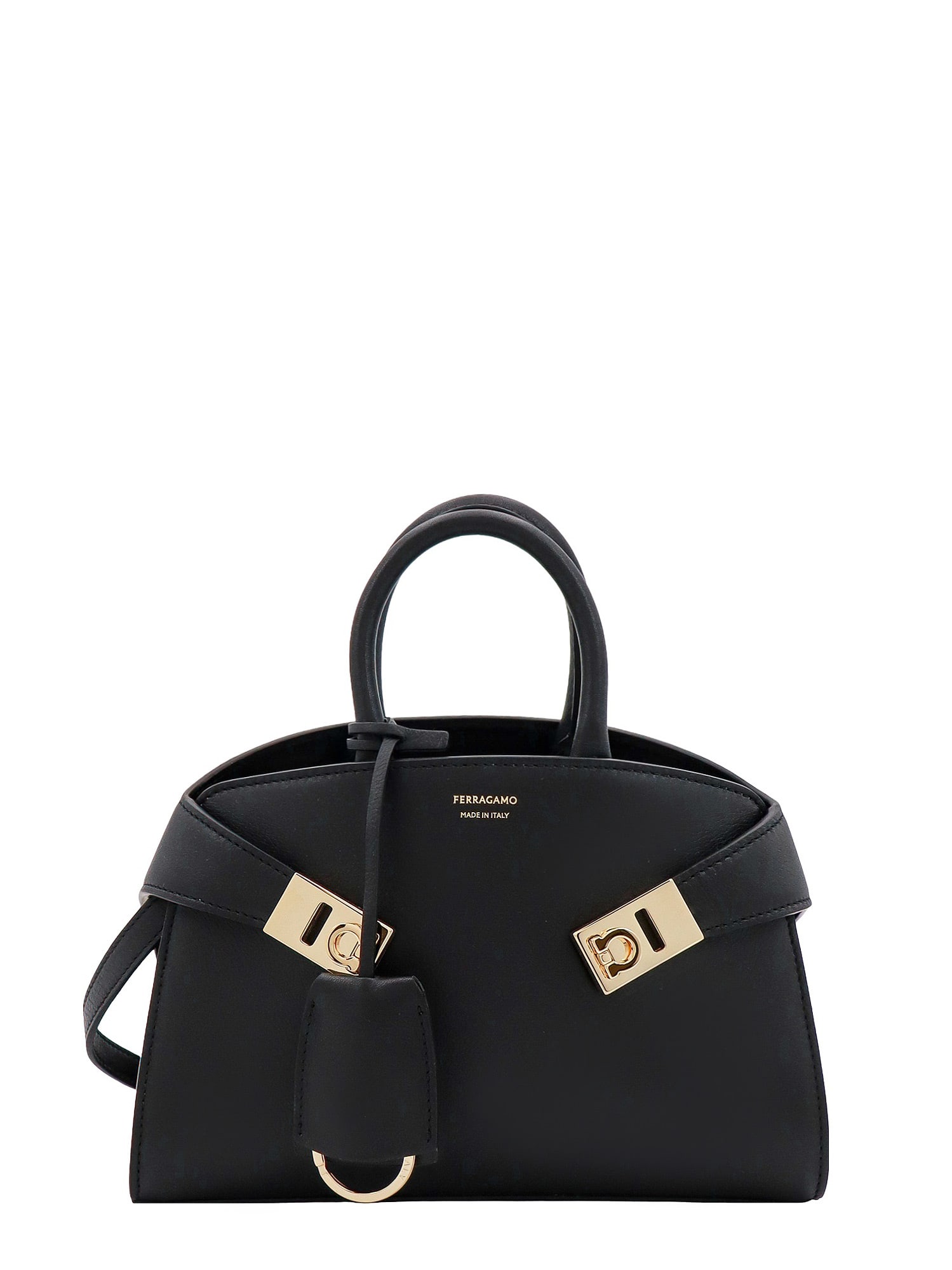 FERRAGAMO Hug M' Black Handbag With Logo And Gancini Buckle In Leather
