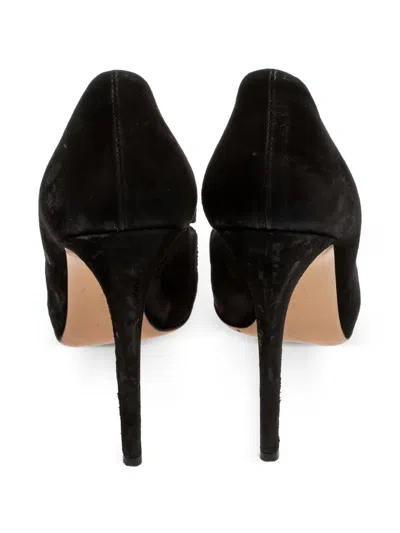 black suede almond toe grosgrain bow detail high stiletto heel gold-toned buckle accent Condition: GOOD. This previously owned and used item is in good condition with minimal signs of use. This may include fading of material or plating and scratches.