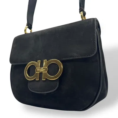 Brand - Salvatore Ferragamo, Color - Black, Material - Suede, Dimensions - 15cm x 19cm x 7cm / 5.9'' x 7.48'' x 2.75'', Country of Origin - Italy, Condition - Rank A. Rank A Used - A few traces of usage, some scratches / dirt can be seen but overall in very good condition. Before purchasing, please refer to the images for the exact condition of the item. Before purchasing, please refer to the images of the accessories included with the item. Bag Common Damage Scratch - Slight Size - One Size