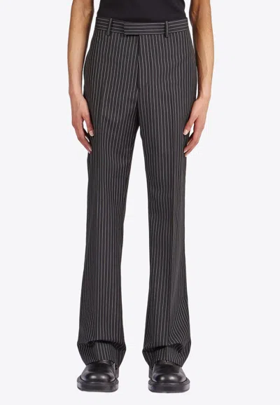 Front hook and zip closure with two concealed hooks and one button Mid rise; Straight leg Regular fit Pinstripe pattern; Silver-tone zipper; Two side slash pockets and two back welt pockets Dry clean only Main - 75% Virgin Wool, 25% Mohair; Lining - 100% Cotton Made in Italy