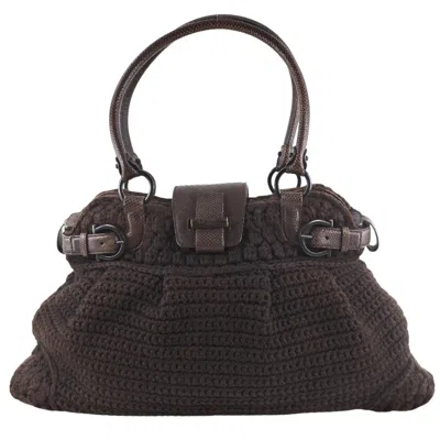 Brand - Salvatore FerragamoModel - Color - BrownMaterial - WoolInclusions - /Dimensions - H 25cm x W 48cm x D 6cm Shoulder height - 18cmSerial number - NACountry of origin - ItalieCondition - AB - good condition.This ladies' shoulder bag is from Salvatore Ferragamo, crafted from dark brown calf leather and knit material. It features an inside zipper opening with two open pockets and one zipped pocket. The condition of the bag shows scratches on the surface, as well as a scuff and a crack on the handle. Please review all the pictures before making your purchase to ensure you are satisfied with the condition of the item.Size - One Size