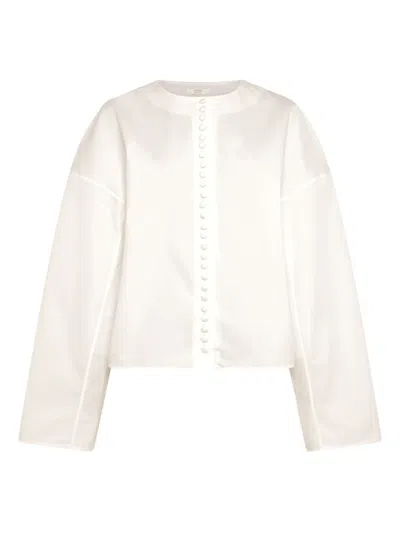 Weiß Knopfverschluss vorne ohne Kragen tiefe Schulter lange Ärmel