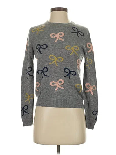 Field Flower Pullover Sweater, Size: Small. Item Details: Gray, Print Pattern, Tie Neck, Long Sleeve, Bows, Women's Tops