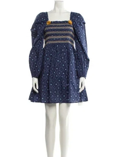 Figue A-Line Dress Blue, White & Yellow Printed Ruffle & Tassel Accents Long Sleeve with Square Neckline Fit: Dresses by Figue typically fit true to size. | Figue Printed Mini Dress in Blue/White/Yellow, Women's M