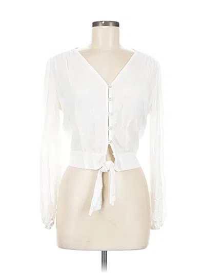 Final Touch Long Sleeve Blouse, Size: Medium. Item Details: White, Plunge Neckline, Lace Up, Women's Tops, 100% Rayon