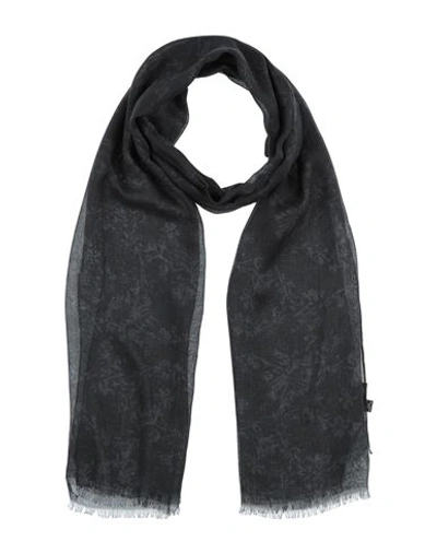 gauze, fringes, floral design, scarf , Color: Black , Size: -