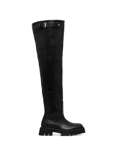 black over-the-knee style buckle fastening lug sole