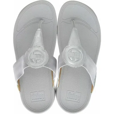 FITFLOP Walkstar Dx4-011 Toe Post Sandals Women's Silver Slip-on Wedge Comfort In White