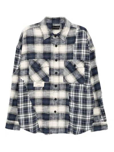 navy blue front button fastening two chest flap pockets logo patch to the front buttoned-cuff sleeves
