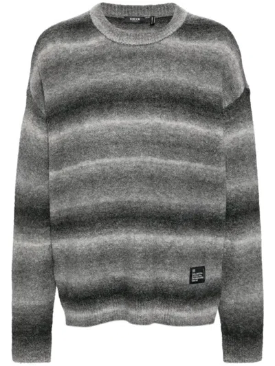 灰色/多色 针织面料 渐色效果 圆领 长袖 落肩 罗纹袖口和下摆 平直下摆