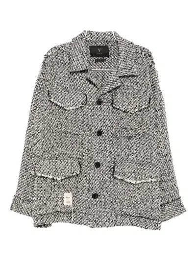 FIVE CM Logo-patch Shirt Jacket In Gray