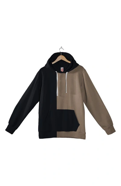 FLEECE FACTORY Split Hoodie In Black/ Beige