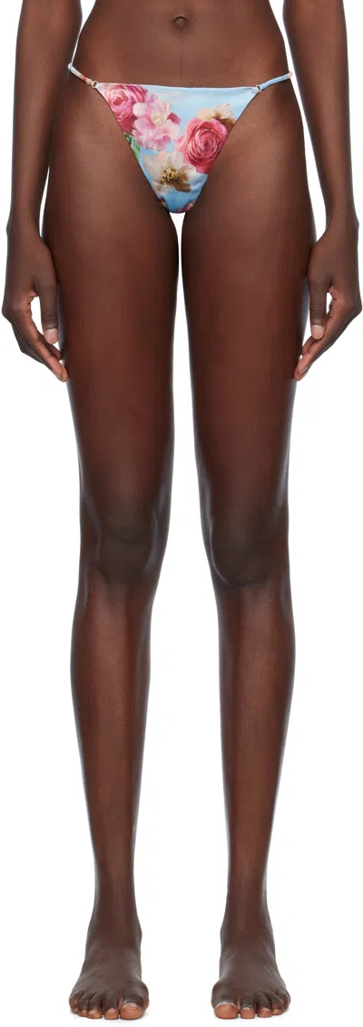 Stretch silk satin thong. Floral pattern printed throughout. · Elasticized waistband · Partial cotton jersey lining Supplier color: Dream of fleur print
