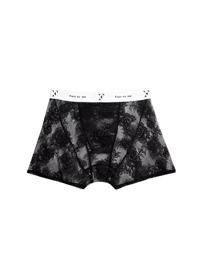 FLEUR DU MAL Men's Bouquet Lace Boxer Brief In Black